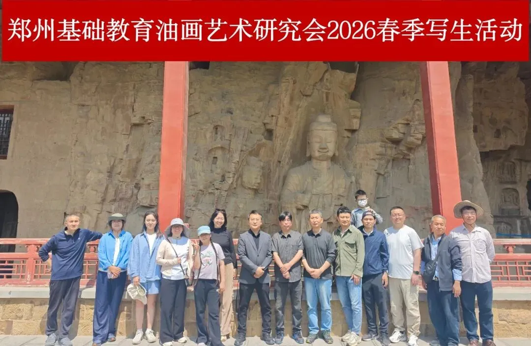 春风送暖,万物勃发,河洛大地满目新绿,处处洋溢着春日的生机与诗意。当春日暖阳轻抚千年石刻,巩义石窟寺的造像壁画、北宋皇陵的神道石像,都在芳菲春色中尽显厚重的历史肌理与精湛的石刻艺术魅力。为持续推进郑州基础教育美术教师队伍专业化发展,拓宽艺术创作视野,深挖本土人文石刻艺术素材,提升油画专业创作水平与团队凝聚力,在郑州市基础教育教学研究室美术教研员田金良老师的牵头引领下,郑州基础教育油画艺术研究会于2026年4月18日—19日,组织全体成员赴巩义开展春季油画写生采风活动。本次活动由研究会秘书长刘强老师负责协调安排,带领14名研究会成员先后走进石窟寺和宋代皇陵,以油彩为媒,摹石刻古韵,绘宋陵风华,在千年文脉与春日盛景中,深耕基础教育美育初心。