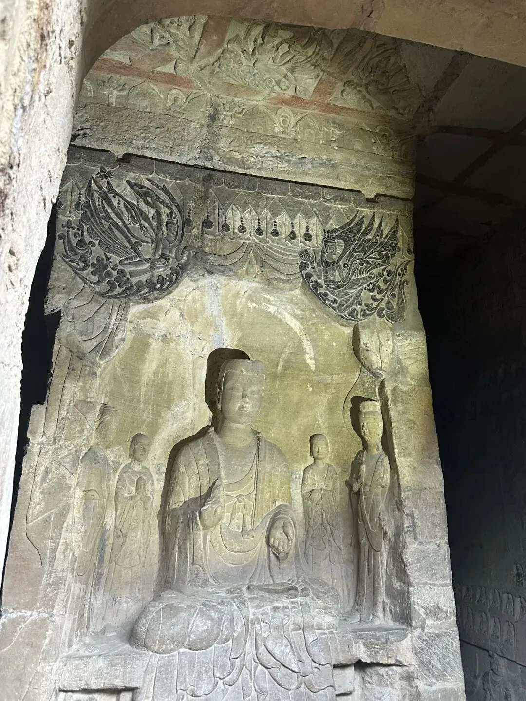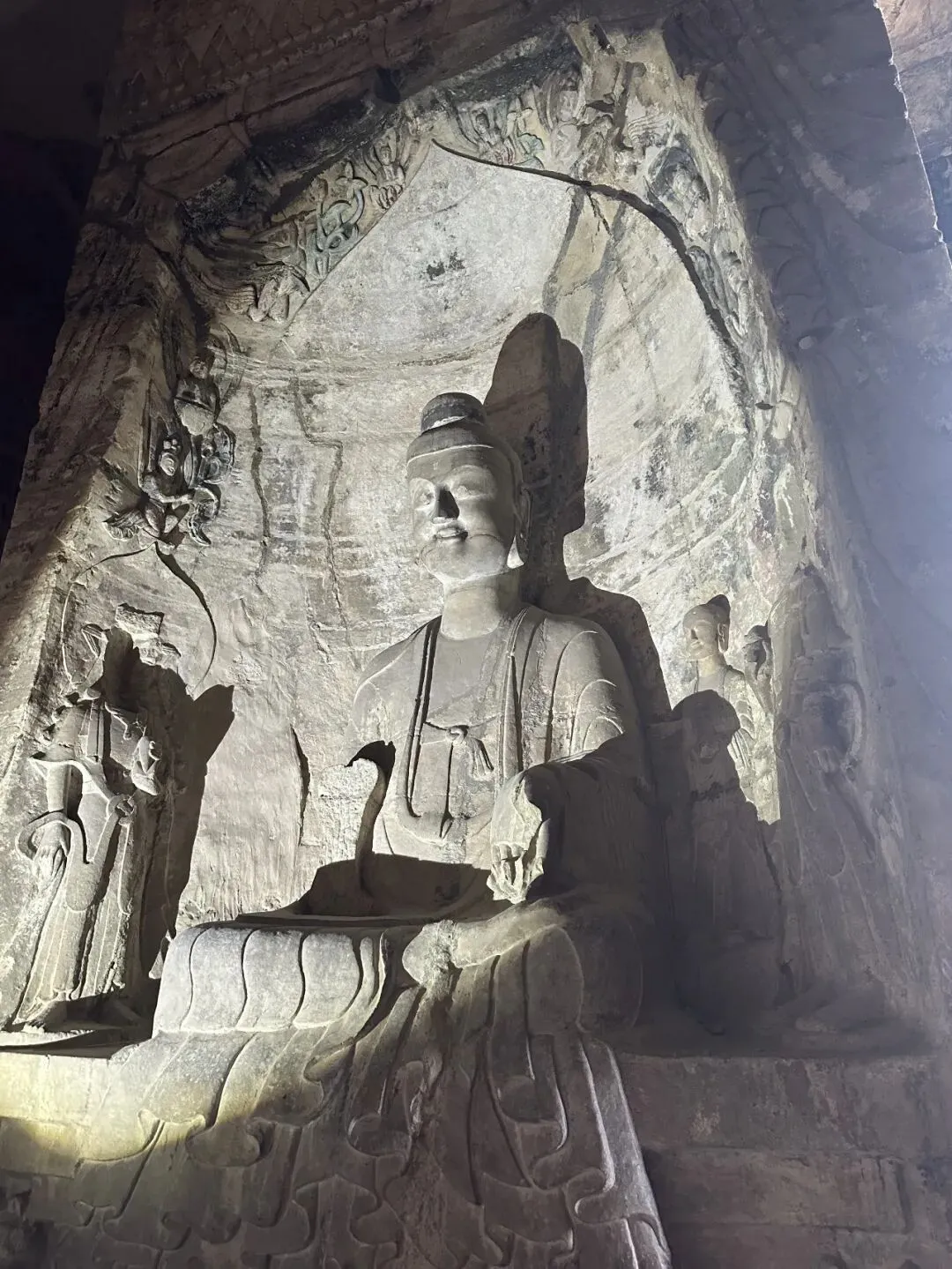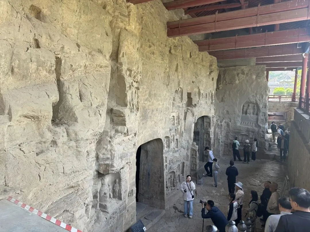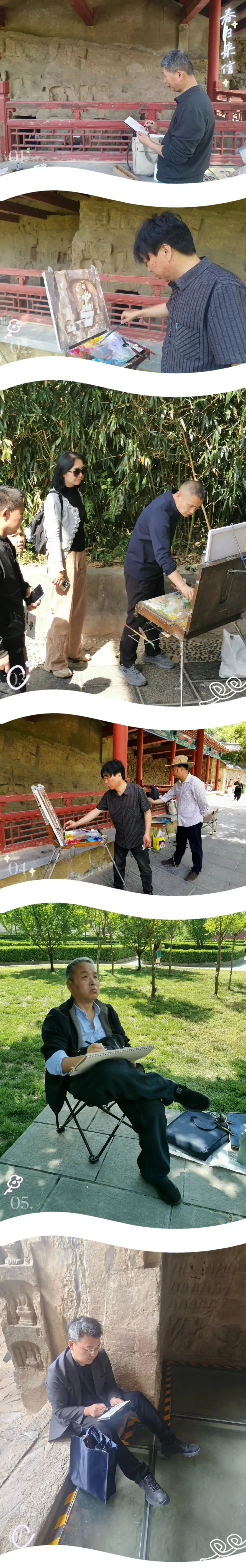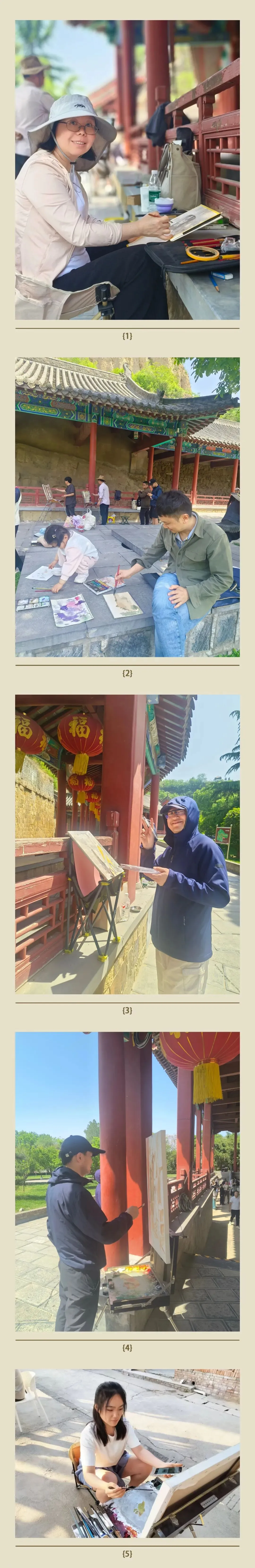 4月18日上午8时50分,写生团队准时于巩义石窟寺门口集结签到,正式开启本次春日写生之旅。巩义石窟寺镌刻着北魏至隋唐的千年石刻艺术,窟龛造像古朴典雅,石刻壁画线条苍劲,春日暖阳洒在千年石壁之上,光影流转间尽显中原石刻文脉底蕴。 老师们纷纷支起画架、调配油彩,驻足石窟廊檐之下,细致捕捉石刻纹样的细腻肌理、光影在石壁间的流动层次,以厚重油彩描摹千年古迹的庄重古韵,将历史沉淀的东方美学定格于画布之上。