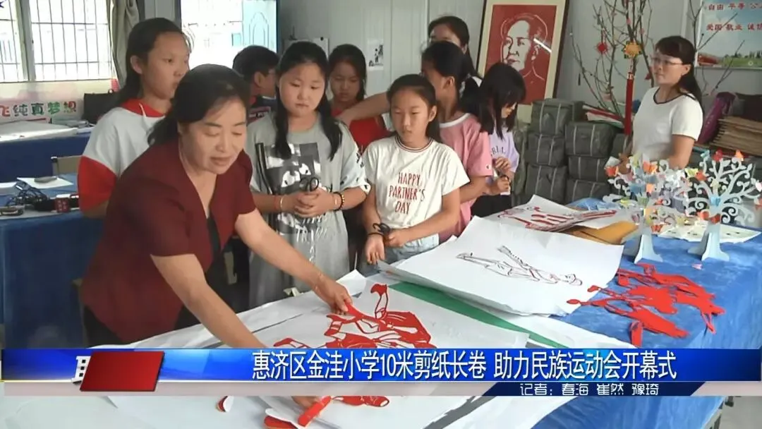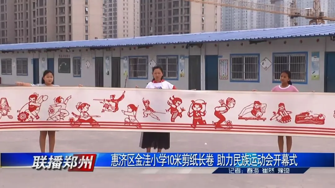 第11届全国少数民族传统体育运动会将在郑州举行。据了解,开幕式现场将有560米剪纸长卷呈现给全国观众,其中由惠济区金洼小学承剪的两个10米剪纸经过两个月的时间已经完工。
