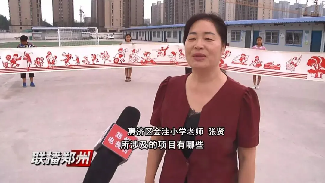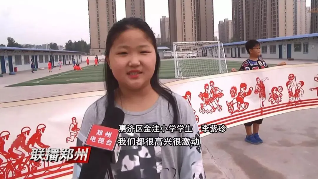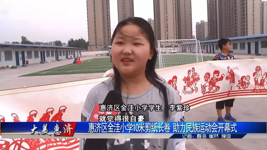 在惠济区金洼小学,师生向记者展现10米长的剪纸长卷,自行车赛、足球、篮球、木球等各项体育运动在长卷上展示的栩栩如生、引人注目。