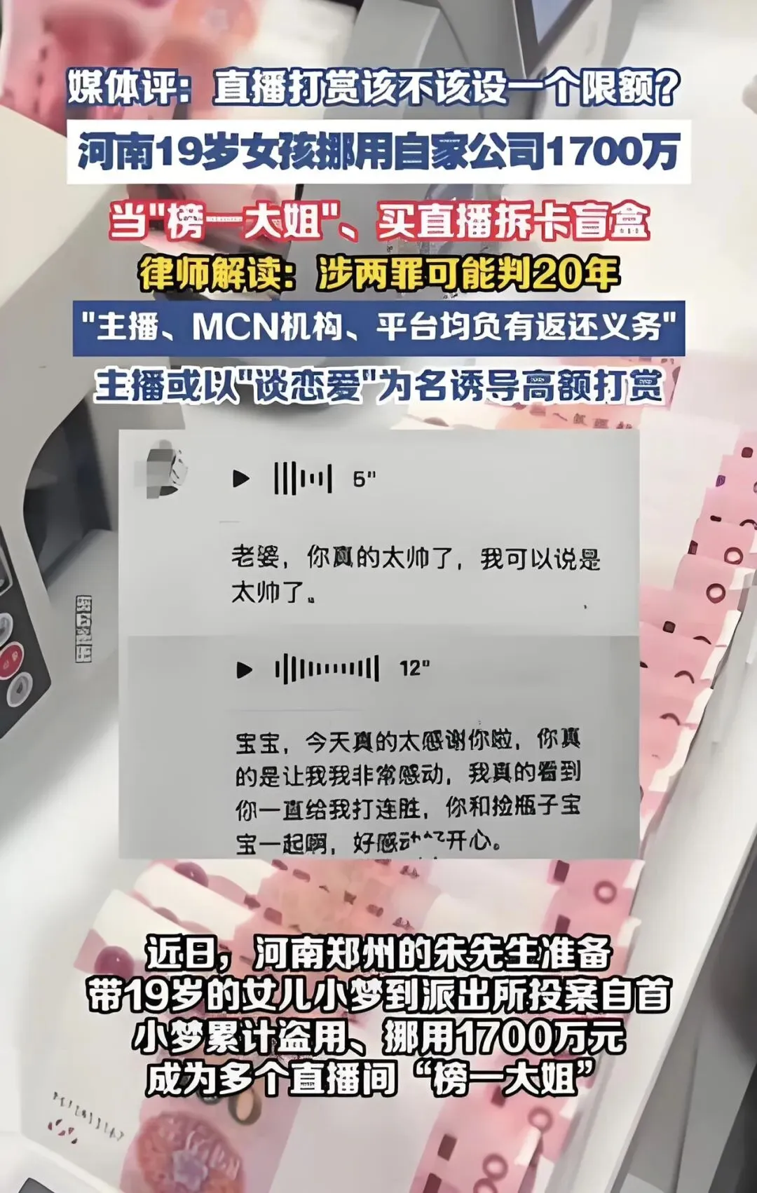 河南郑州一名19岁辍学女孩,短短一年多时间,偷偷挪用父亲冷链档口高达1700万经营资金。没有买房、没有买车、没有消费奢侈品,大半钱财全部砸进网络直播间、用来购买拆卡盲盒。