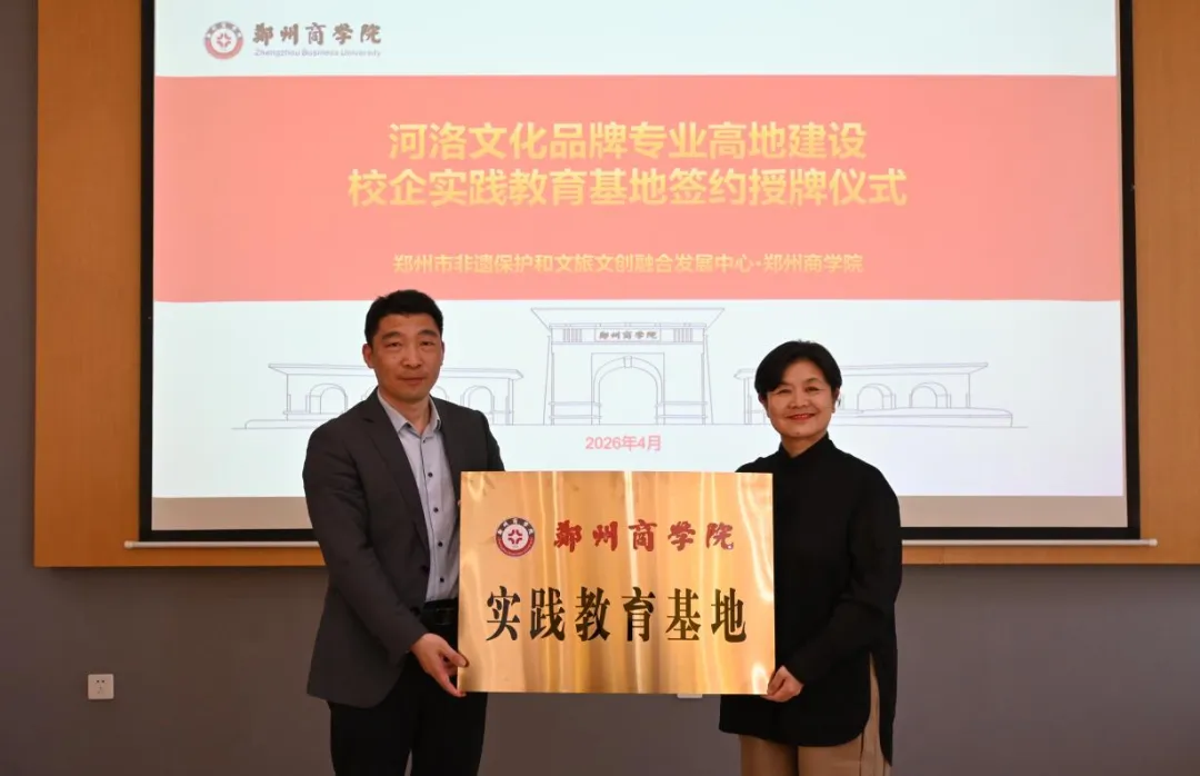 4月20日,郑州市非遗保护与文旅文创融合发展中心与郑州商学院教育实践基地签约授牌仪式在郑州商学院隆重举行。中国艺术研究院苑利教授、河洛剪纸传承人曹慧贞、郑州商学院副校长刘升阳、艺术学院院长牛琳琳、中心主任李桂玲等共同出席活动,校地携手共促非遗传承与人才培养。