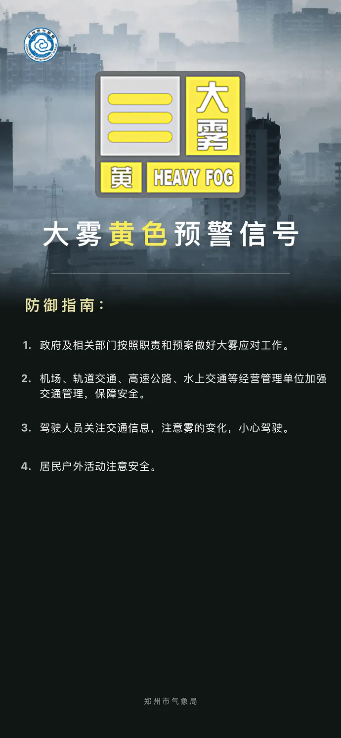 郑州继续发布大雾黄色预警!雨+雪+大风来袭,气温暴跌!