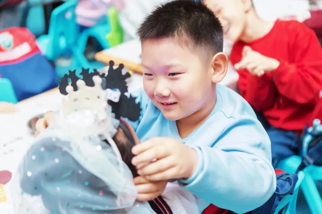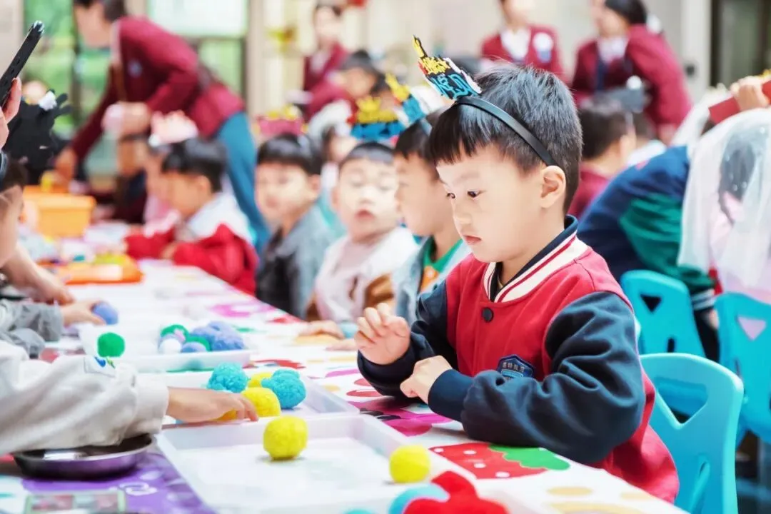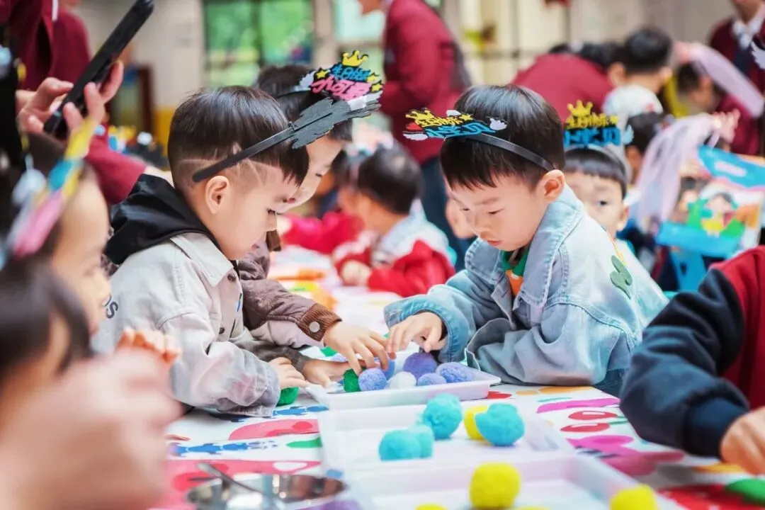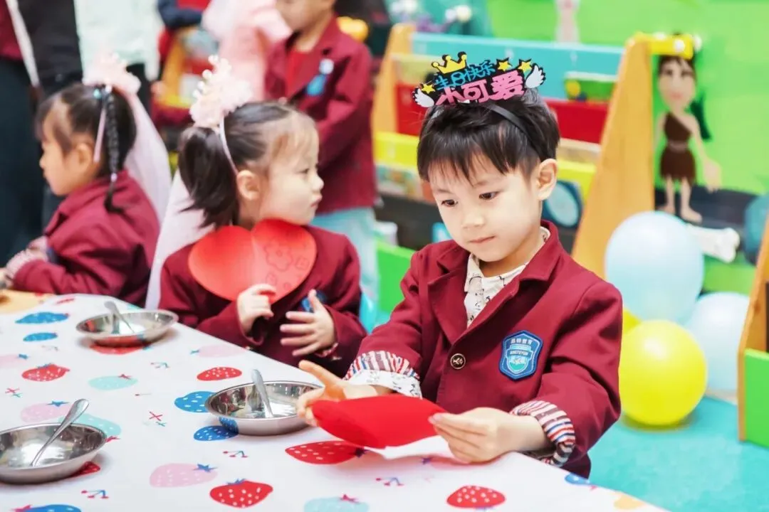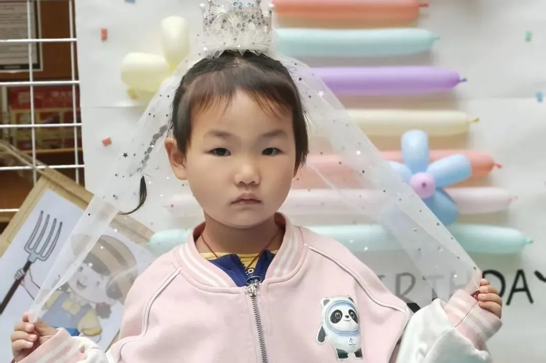 生日会现场被装饰得温馨而浪漫,气球、彩带和展板将整个空间点缀得格外喜庆。每一位走进现场的幼儿都能感受到浓浓的节日氛围。幼儿园还为每位寿星准备了精美的生日帽和专属的生日礼物,让大家在入场的那一刻就感受到满满的仪式感。