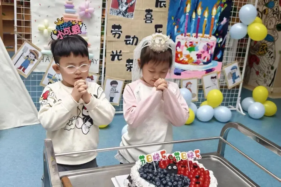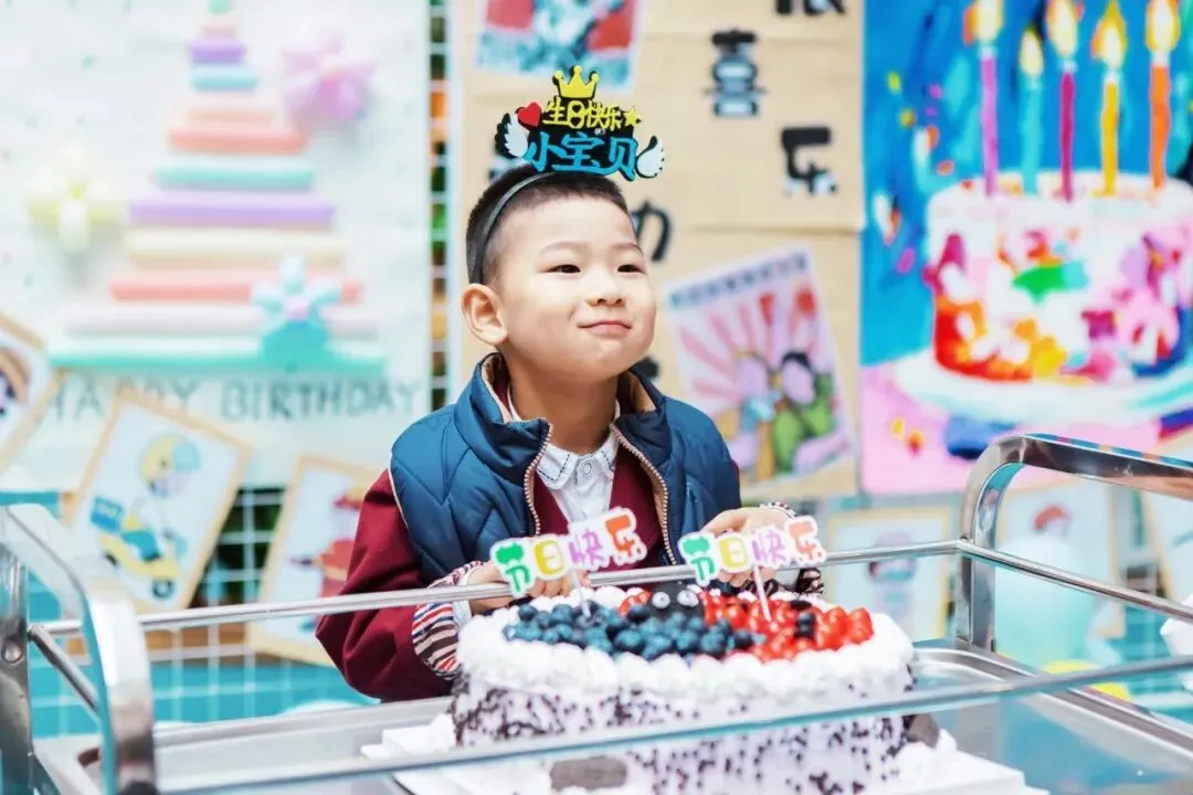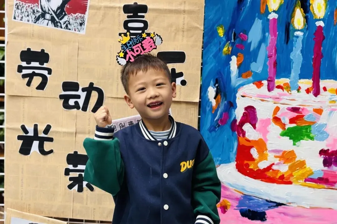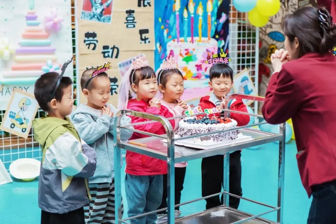 欢快的《劳动最光荣》响起,戴着生日帽的小寿星们闪亮登场,他们脸上洋溢着幸福,开启这场特别的生日之旅!