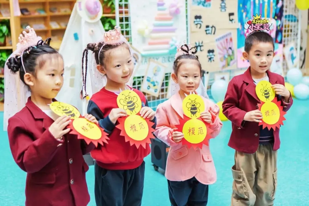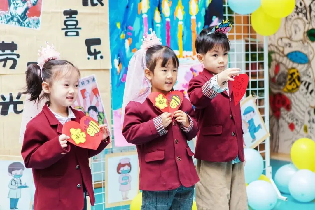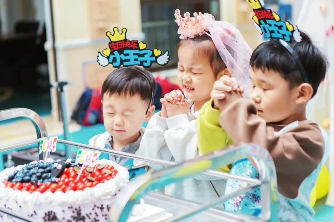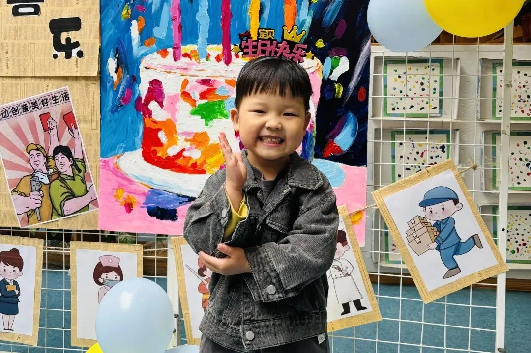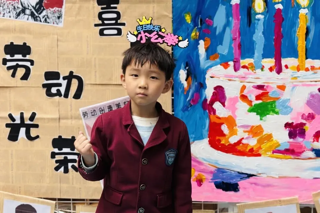 欢快的《劳动最光荣》响起,戴着生日帽的小寿星们闪亮登场,他们脸上洋溢着幸福,开启这场特别的生日之旅!