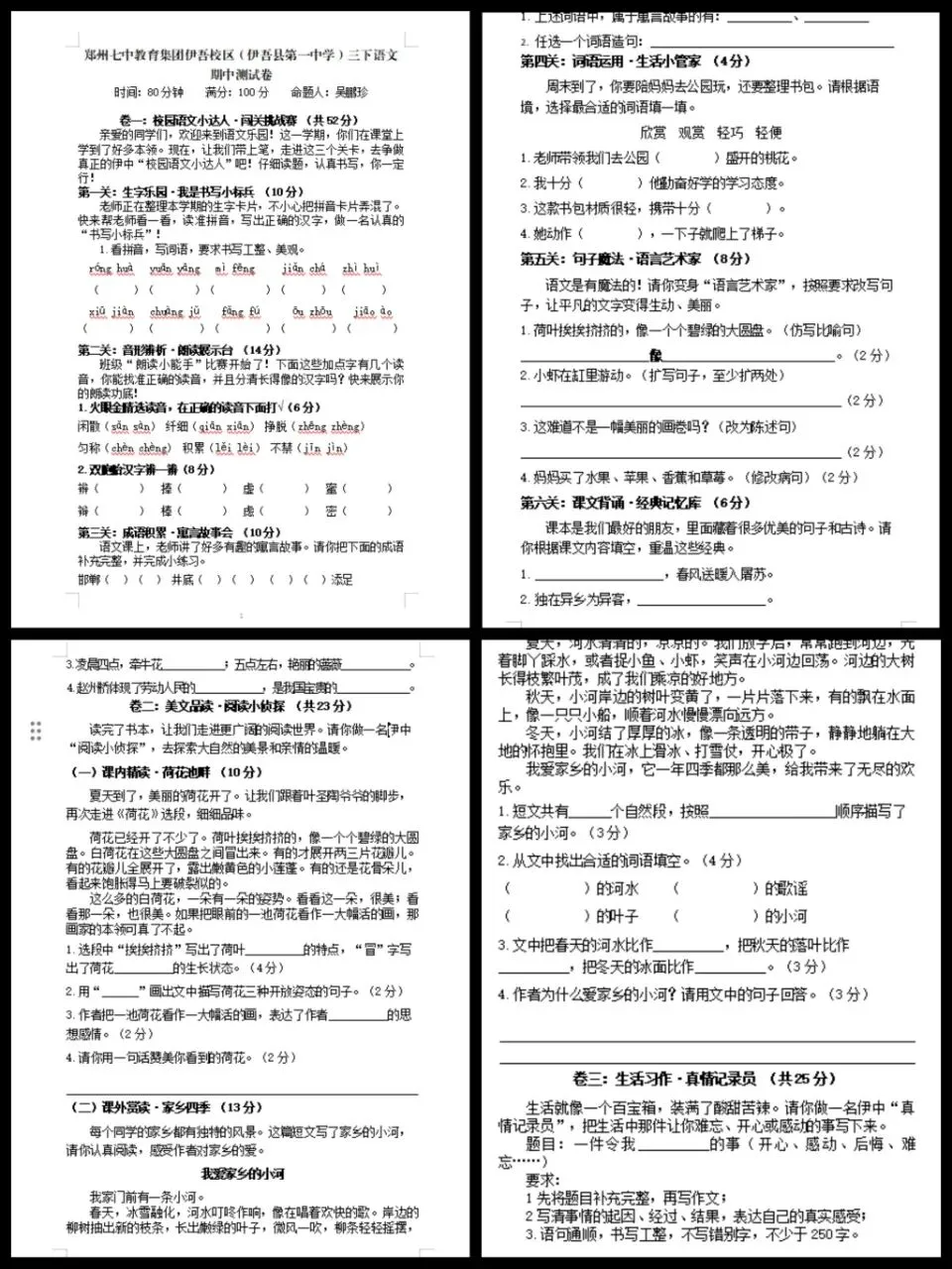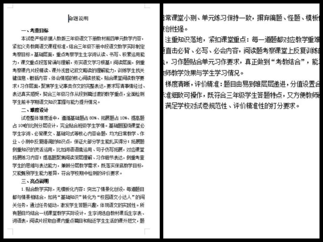 二、活动主要成效一是教师命题能力得到明显提升。通过系统学习课标、研究题型、独立命题,老师们对教材重难点、考点分布、试卷结构和难度把控更加清晰,命题规范性、科学性显著增强,绝大多数试卷结构完整、难易适中、贴合学情。