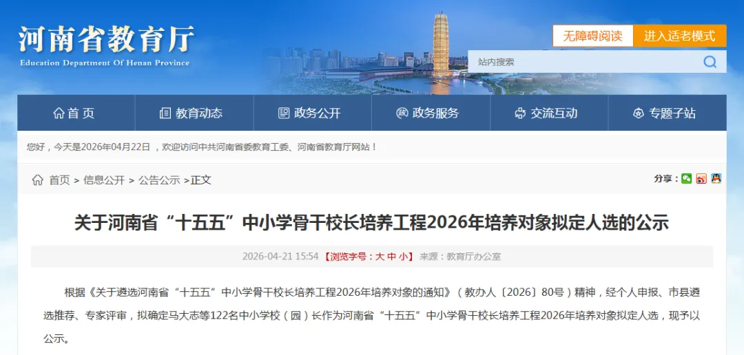 河南省“十五五”中小学骨干校长培养工程2026年培养对象拟定人选名单(郑州地区)