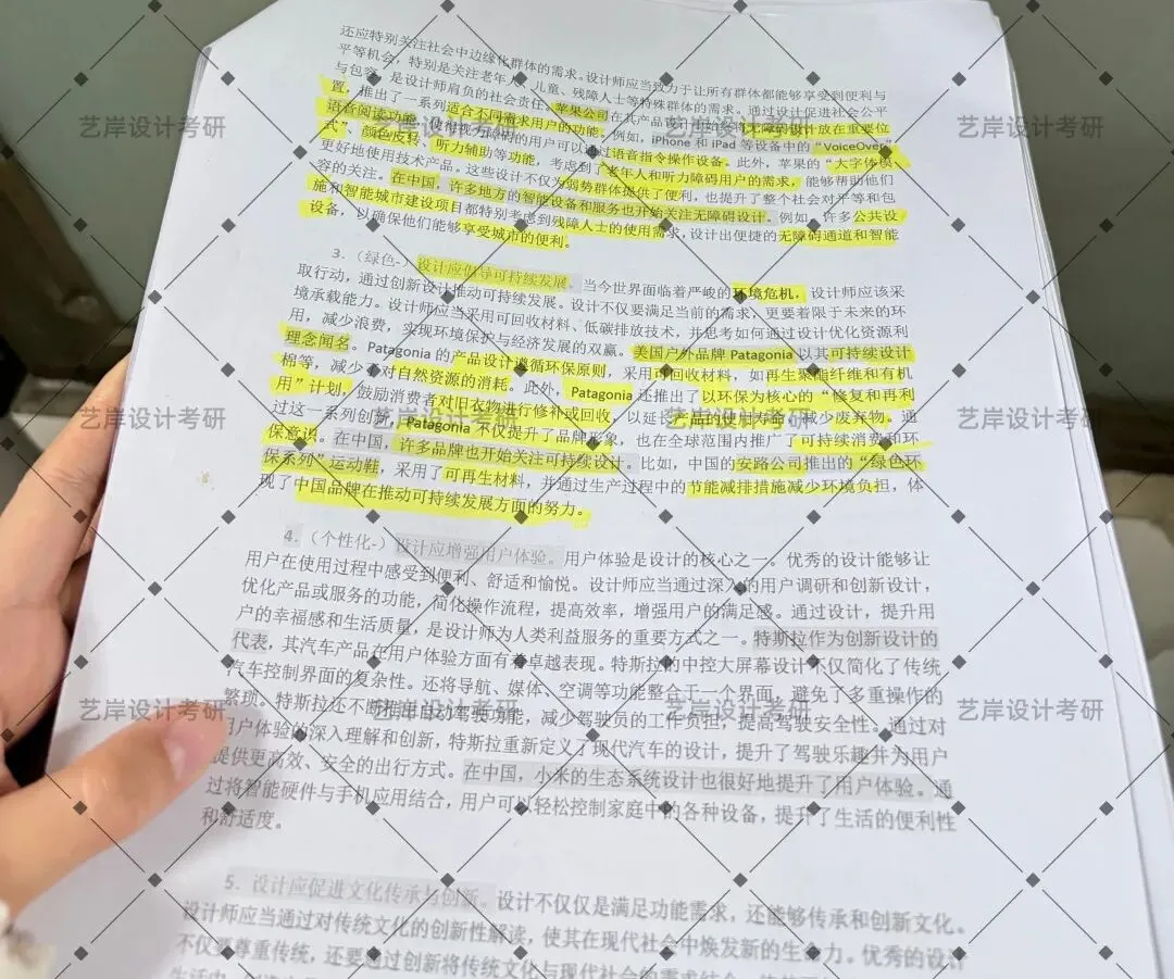 出成绩之后,我知道我的排名不高,立刻投入复试准备。时间紧、任务重,我当时特别紧张,担心准备不充分、发挥不稳定。在艺岸老师的帮助下,我快速梳理了复试核心考点:一方面巩固初试理论重点,快速回顾设计史、专业热点与作品集逻辑;另一方面打磨中英文自我介绍,练习高频问答,调整表达逻辑与语速仪态。老师还帮我进行了线下模拟面试,指出我的问题,一点点帮我纠正、强化自信。