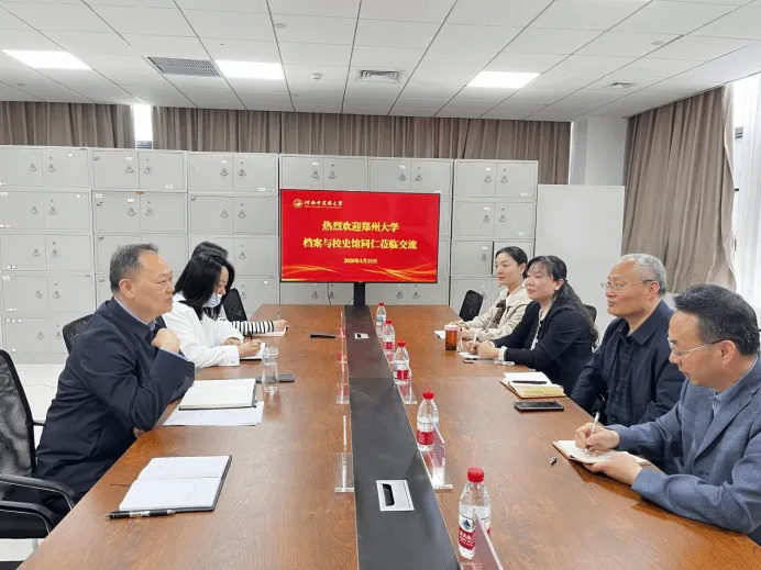 2026年4月15日,郑州大学档案与校史馆馆长鲁六、副馆长崔红伟、伏琰等一行来我校调研,档案馆相关负责人参加座谈。