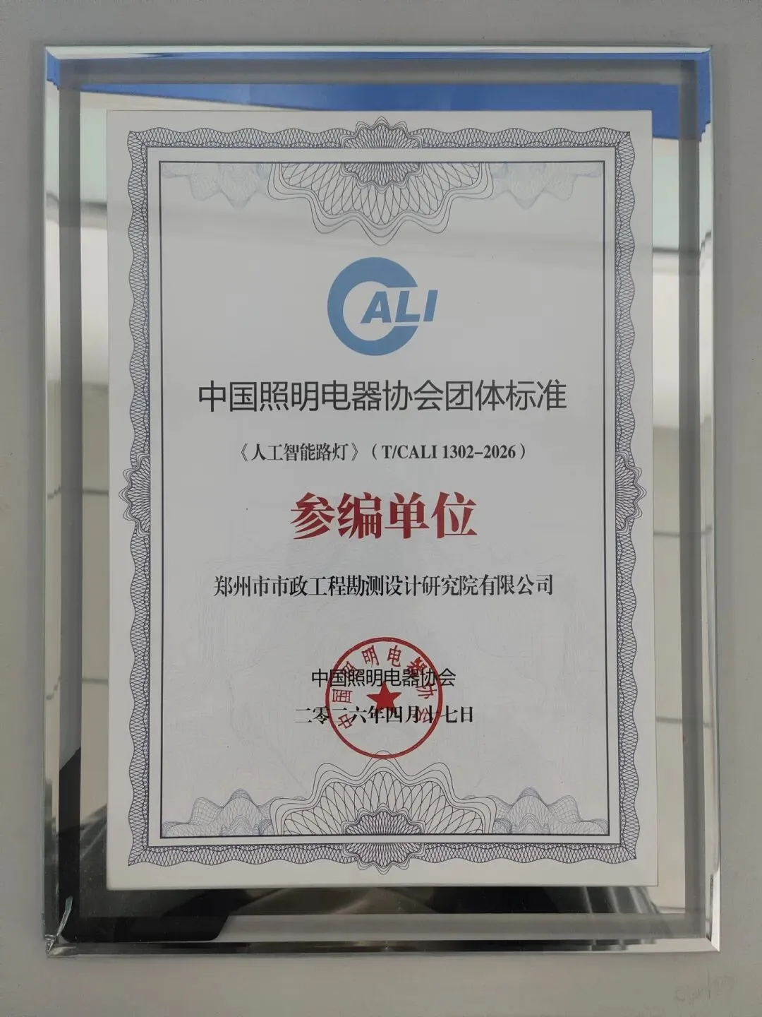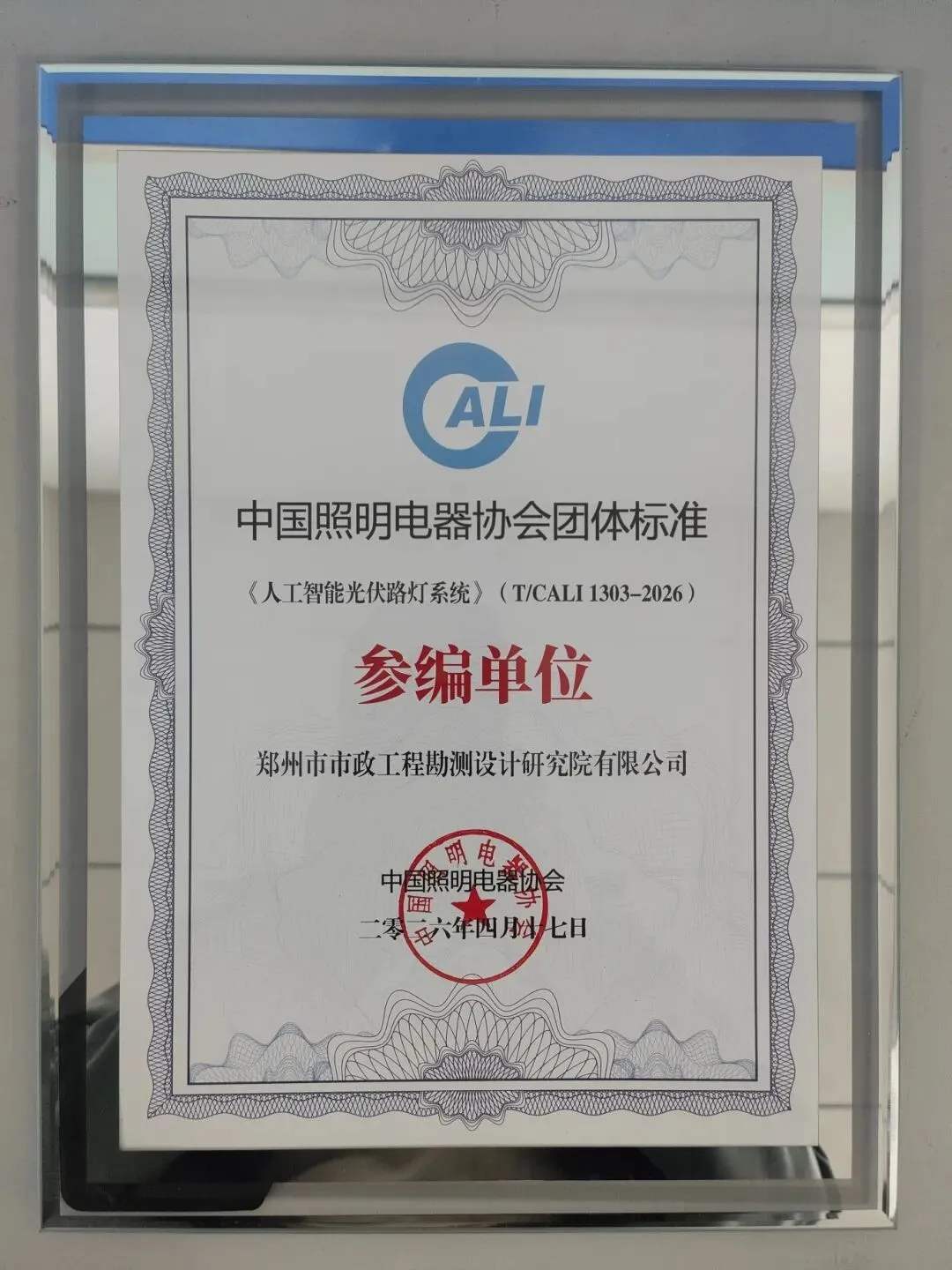 同期,郑州市政设计院参编的《人工智能路灯》(T/CALI1302-2026)、《人工智能光伏路灯系统》(T/CALI1303-2026)两项中国照明电器协会团体标准,于2026年4月17日在中国道路照明论坛发布,实现地方标准与团体标准双向突破。
