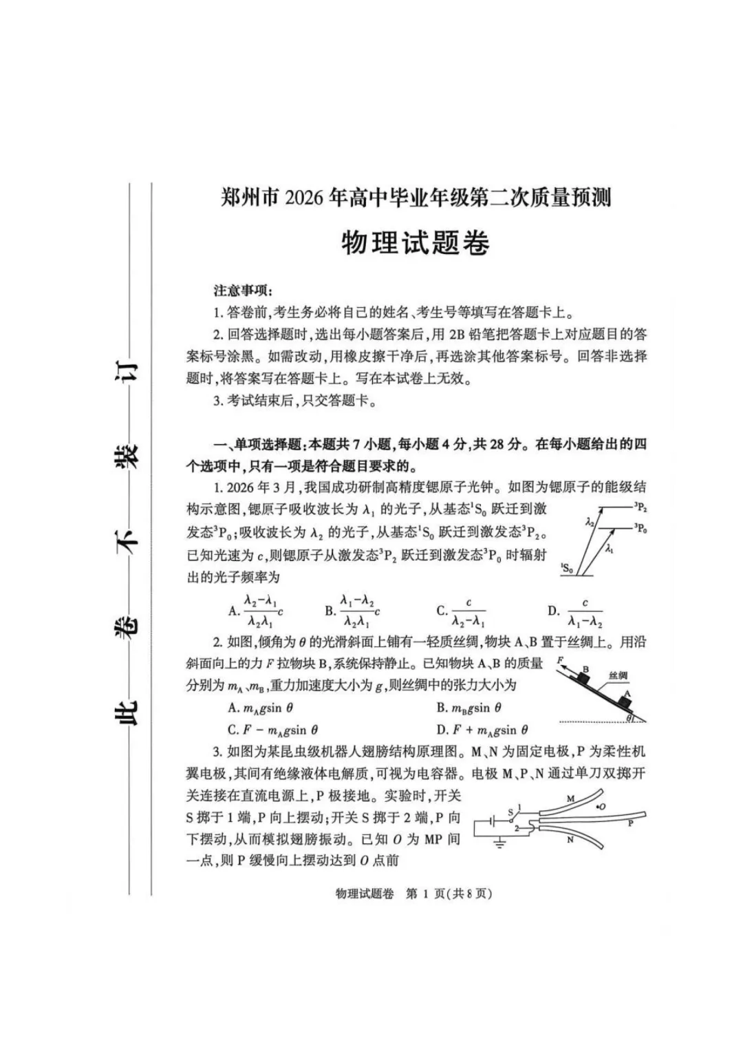 郑州二模|郑州市 2026 年高中毕业年级第二次质量预测