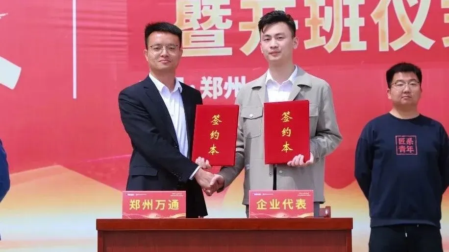 技筑成长之路,校企共启新程。4月22日,郑州万通校企合作岗前强化定向班签约暨开班仪式在校门口广场如期举行,学校领导、企业代表与定向班学员齐聚一堂,共同见证产教融合的重要时刻,共绘协同育人新蓝图。