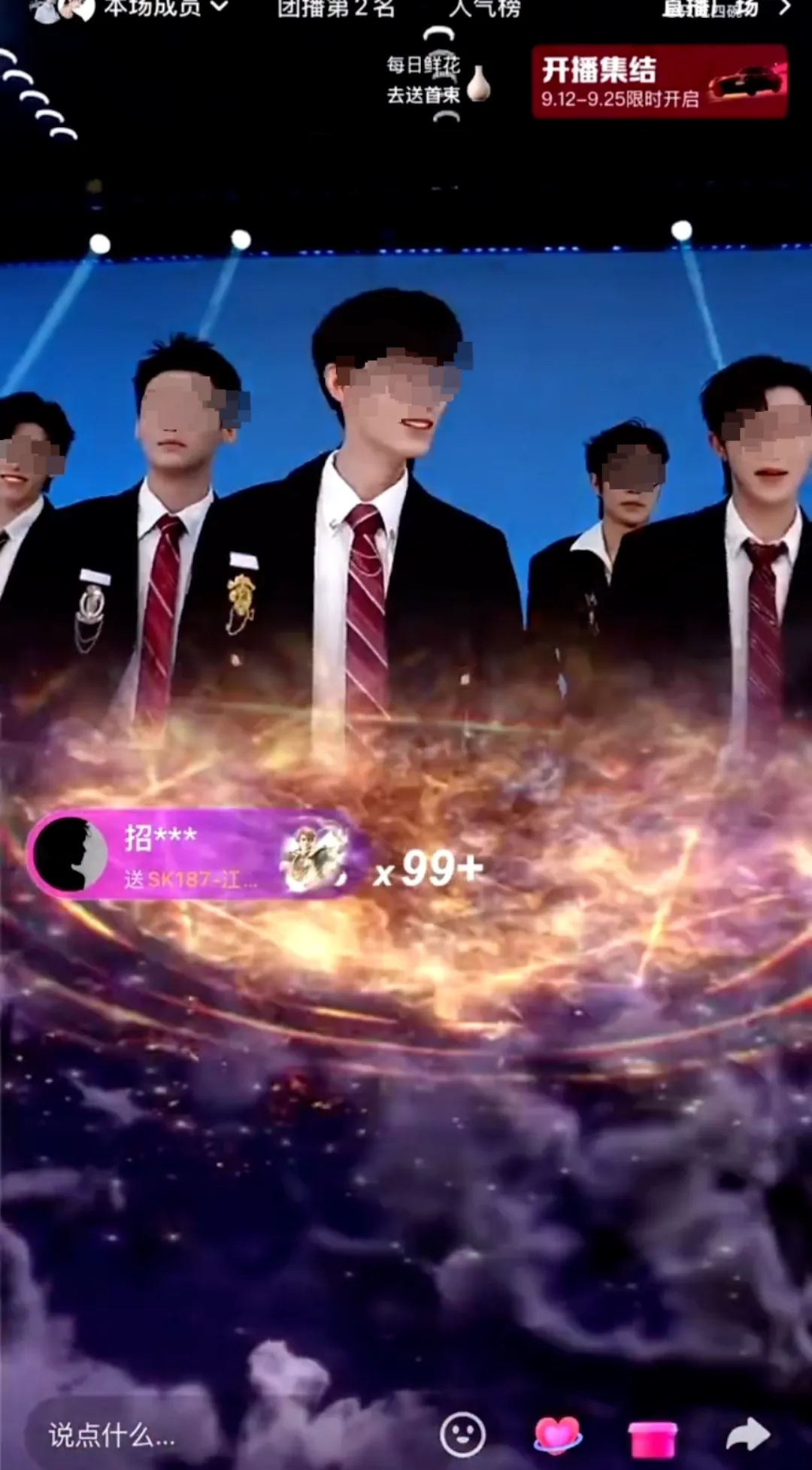 小朱向男主播刷100个高阶礼物。直播间截图