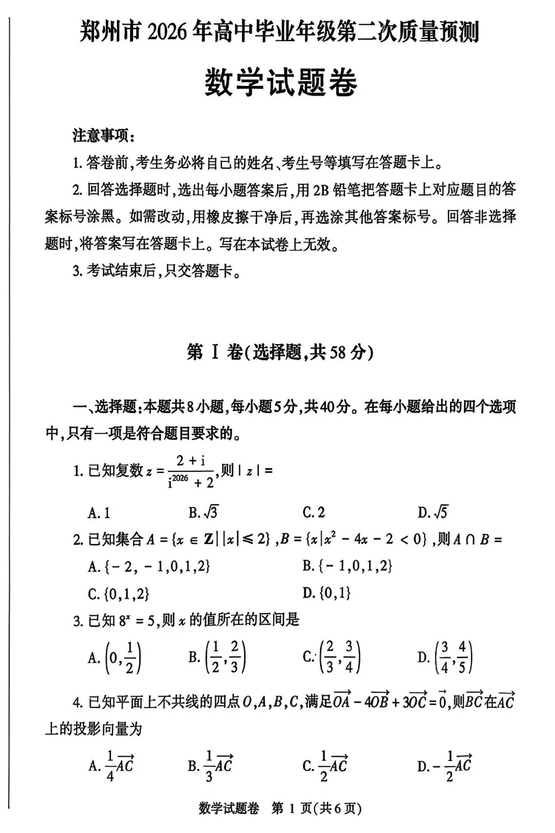 作者寄语:2026届郑州二模数学试题+答案,7天有效领取,手慢无!!!