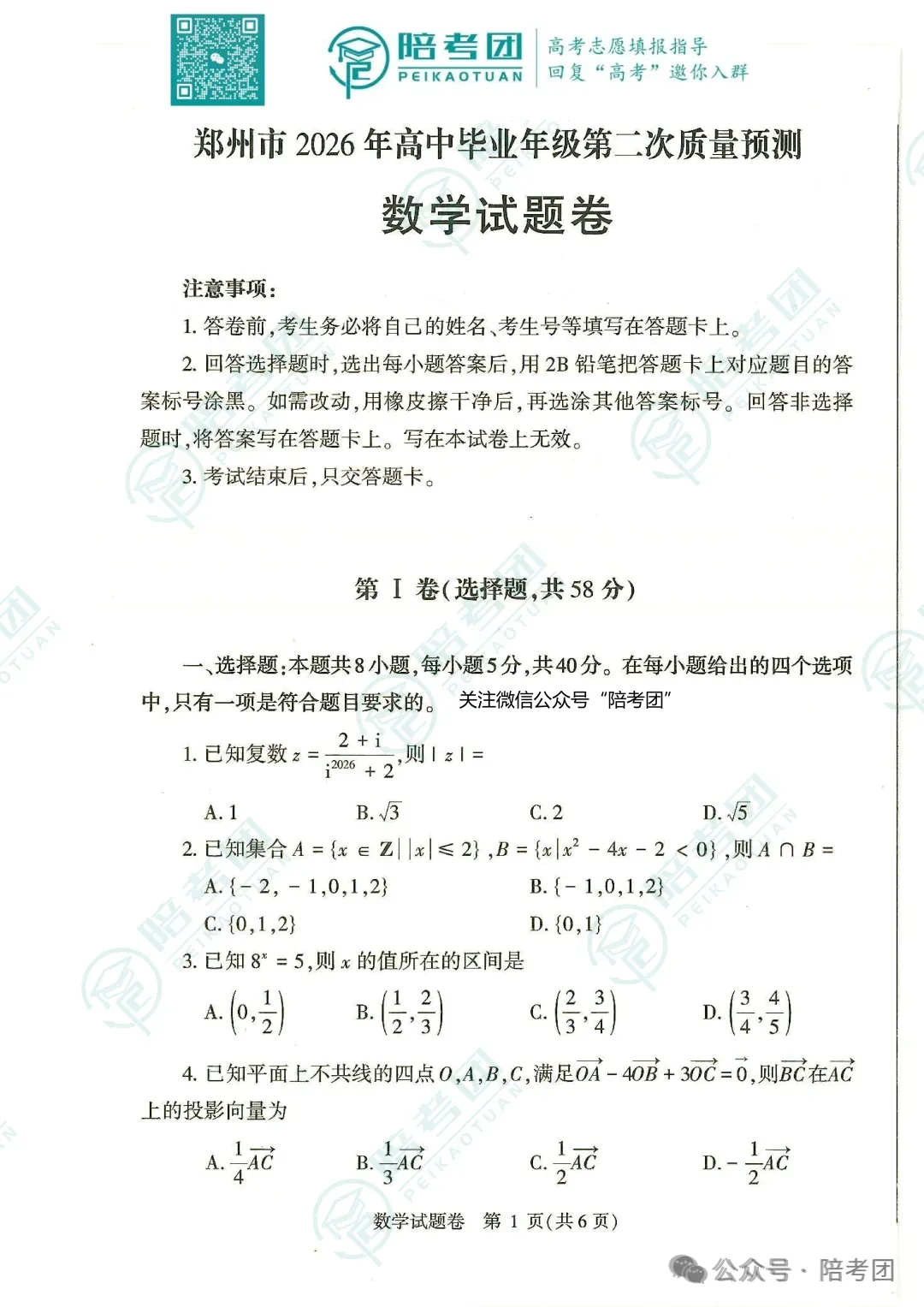 9科全!郑州2026届高三二模试卷及答案(文末下载)