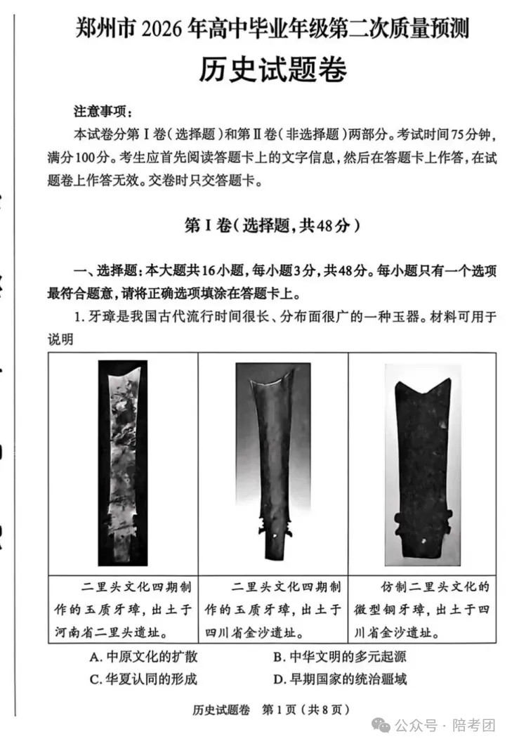 【陪考团】2026郑州高三二模历史试卷及答案.pdf