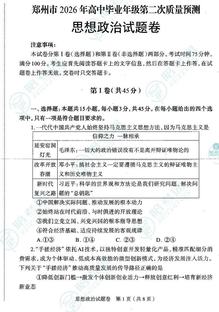 【陪考团】2026郑州二模政治试卷及答案.pdf